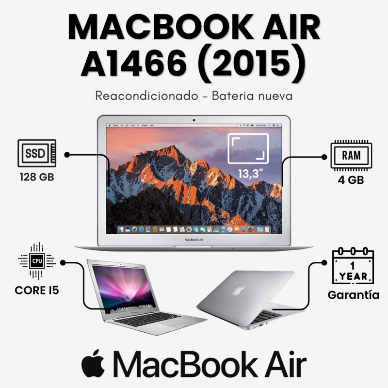 Este equipo está reacondicionado y probado por técnicos especializados, e incorpora batería nueva, ofreciendo mayor durabilidad y confianza. Una excelente opción para usuarios que buscan un portátil Apple fiable, ligero y económico.